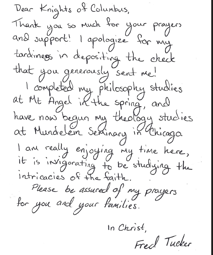 Council 9238 supports the following two seminarians.